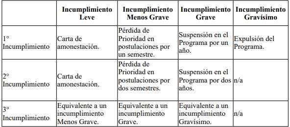 . Las sanciones son progresivamente más severas según el tipo y cantidad de incumplimientos que ocurran.