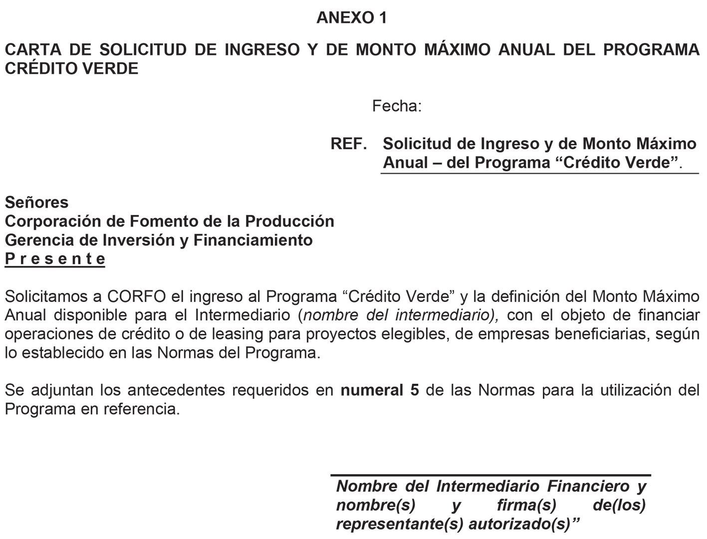 Las letras a), b), c) y d) del numeral 1 y el numeral 2 del Nº1 y las letras a) y b) del numeral 1 y el numeral 2 del Nº 2 de la Resolución 113, Economía, publicada el 09.12.2024, modifican la presente norma en el sentido de ejecutar el Acuerdo del Comité Ejecutivo de Créditos N° 29.400, de fecha 10 de julio de 2024, en el marco del Programa "Crédito Verde", en la forma que indica. No obstante lo anterior, no es posible incorporar las modificaciones en el presente texto actualizado en razón de que no coinciden los textos.
