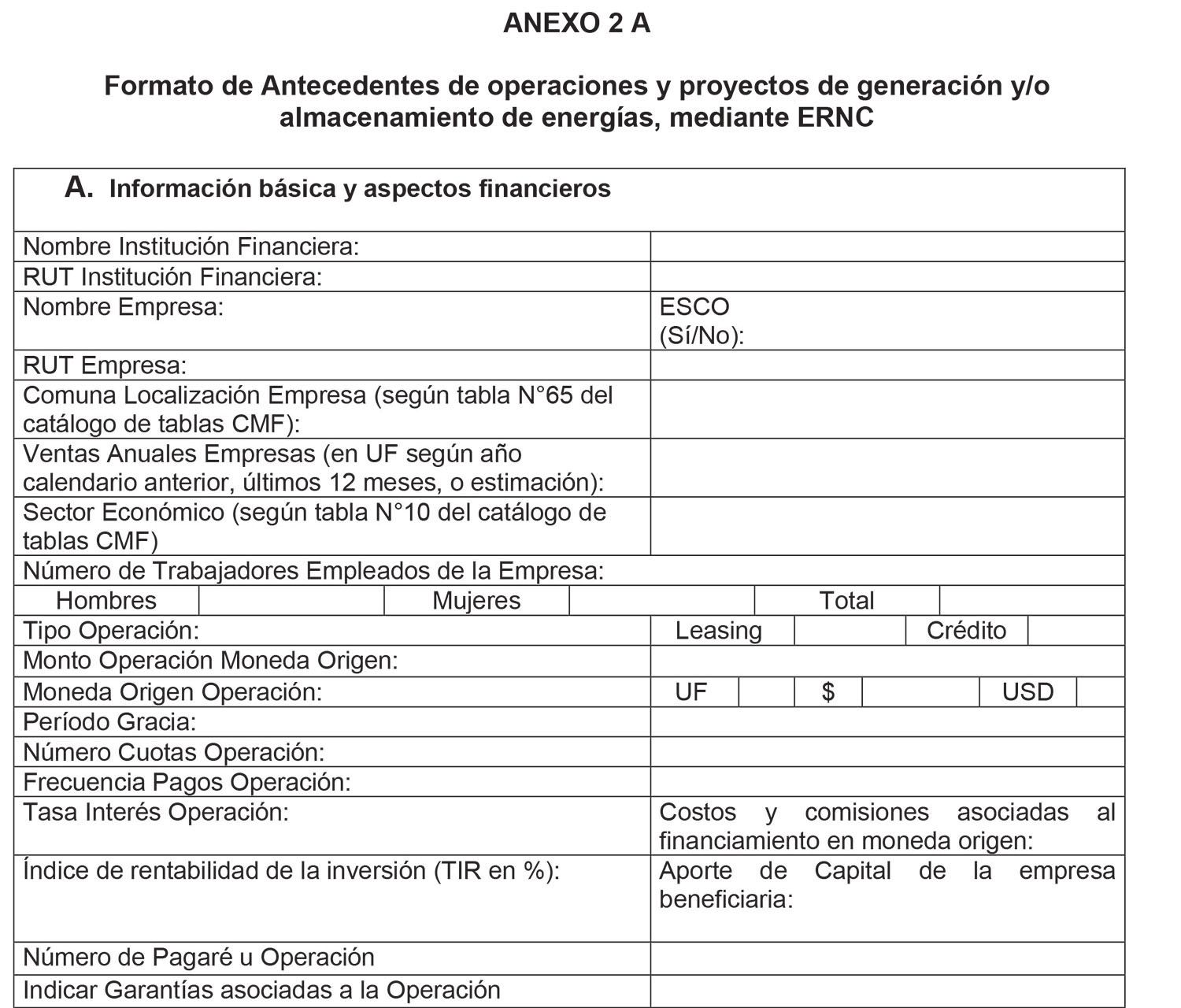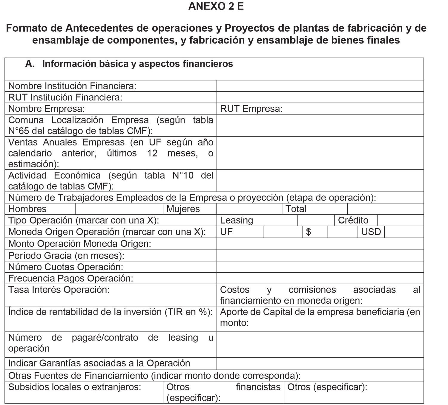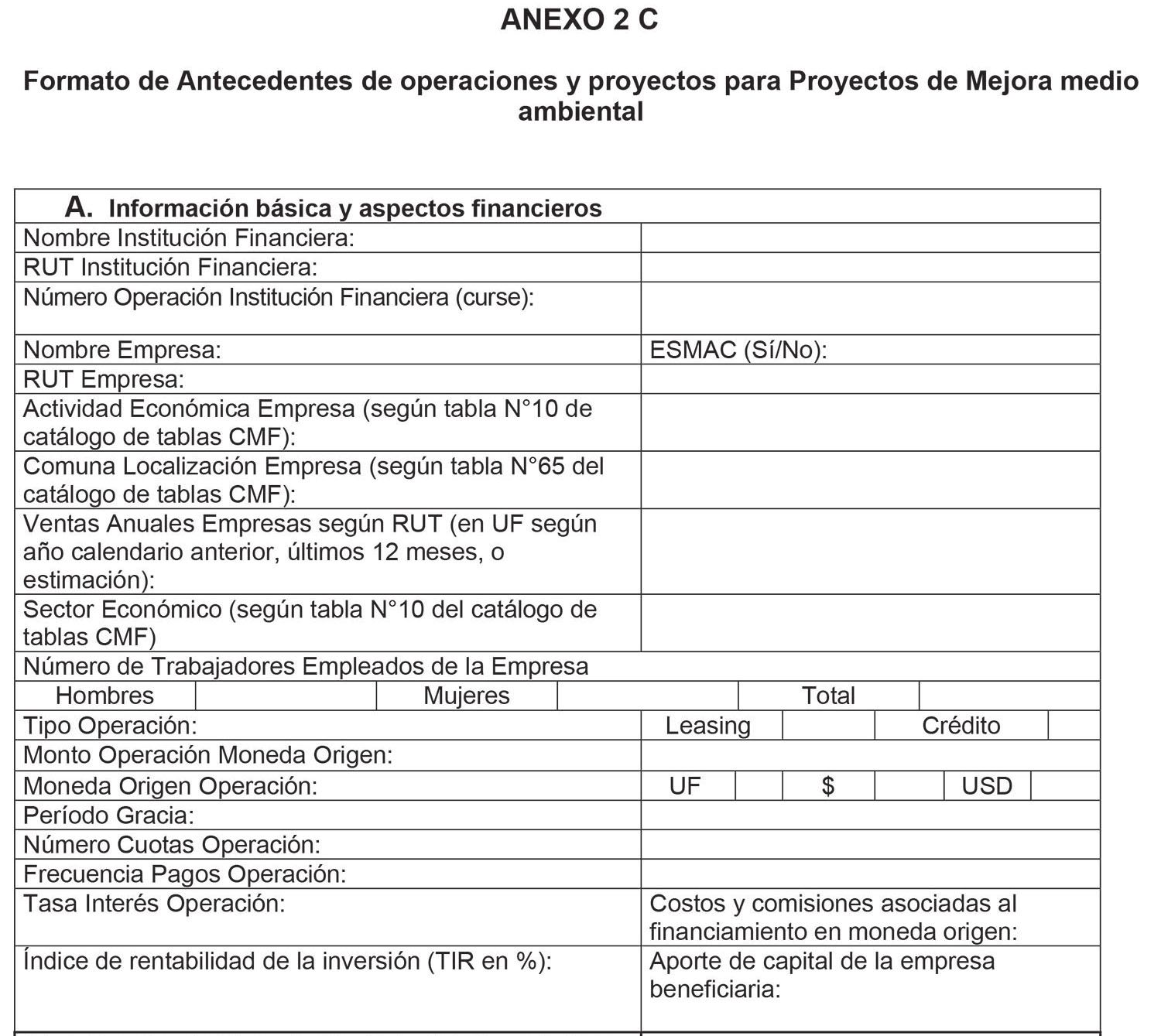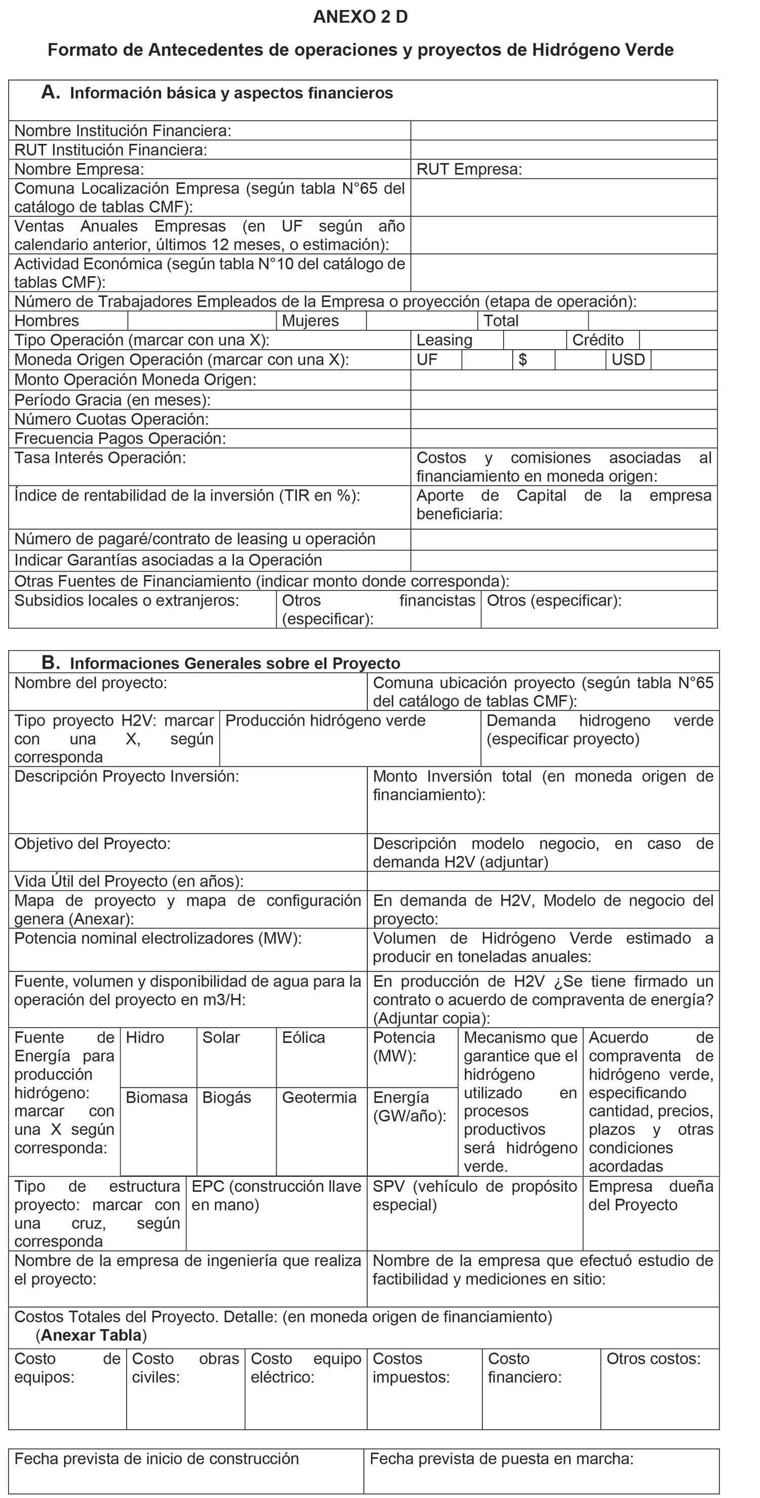 D.O. 09.12.2024 programa "Crédito Verde" (en adelante indistintamente el "Programa") tiene por objeto el refinanciamiento de créditos de largo plazo que otorguen los intermediarios financieros para las inversiones que realicen las empresas privadas para proyectos destinados a (i) generación y/o almacenamiento de energías renovables no convencionales (ERNC), incluyendo proyectos para autoabastecimiento de empresas; (ii) Eficiencia energética (EE) relacionados con la optimización del uso energético y la reducción de costos asociados al uso de la energía en empresas; y (iii) medidas de mejora medio ambiental en procesos productivos, dentro de lo que se encuentran comprendidas las iniciativas de economía circular; (iv) desarrollo de la industria de hidrógeno verde; y (v) inversión en plantas de fabricación y de ensamblaje de componentes, y de fabricación y ensamblaje de bienes finales, destinados a los proyectos de inversión indicados en este numeral. En el caso de los proyectos de hidrógeno verde definidos en el (iv) anterior, el objeto del refinanciamiento podrá también cubrir el costo de estudios de preinversión que hubieran efectuado los proyectos.