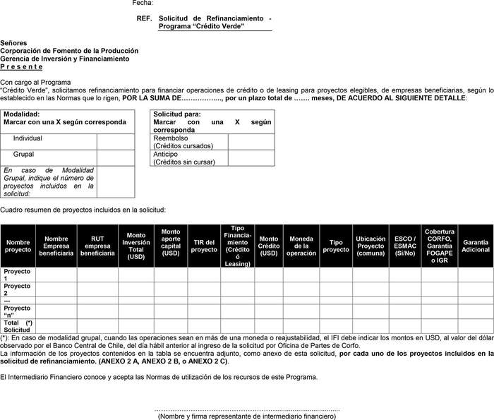CARTA DE SOLICITUD DE REFINANCIAMIENTO PROGRAMA CRÉDITO VERDE