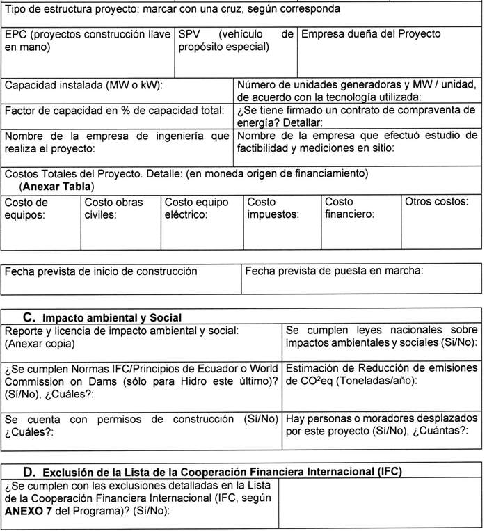Formato de Antecedentes de operaciones y proyectos de generación y/o almacenamiento de energías, mediante ERNC