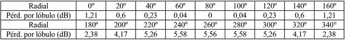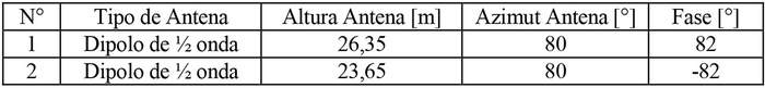 - Arreglo de antenas de acuerdo a la siguiente tabla:
