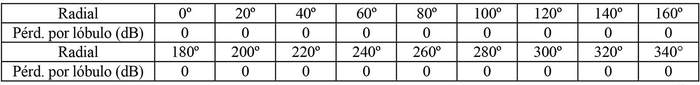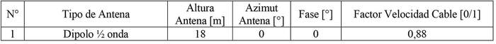 - Arreglo de antena de acuerdo a la siguiente tabla: