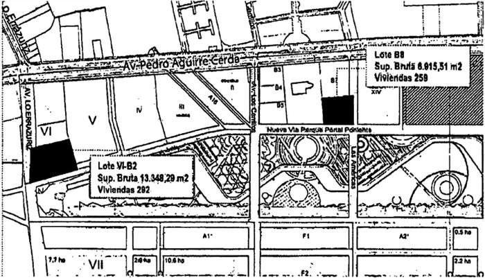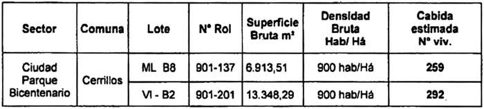 d) Que el Serviu Metropolitano dispone de dos terrenos en el Sector de Ciudad Parque Bicentenario, de la comuna de Cerrillos. El primer lote, ML B8, corresponde a un predio urbano ubicado en Nueva vía Parque Portal Poniente (ex calle 5), Rol de avalúo SII N° 901-137. El segundo lote, VI-B2, corresponde a un predio urbano ubicado en Av. Lo Errázuriz esquina Parque Portal Poniente, rol de avalúo SII N° 901-201;