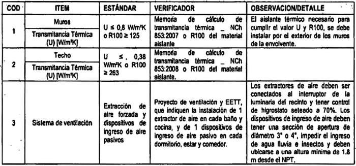 a) El proyecto deberá incluir elementos de eficiencia energética. El estándar mínimo obligatorio de eficiencia energética para elementos de la envolvente de las viviendas será el siguiente: