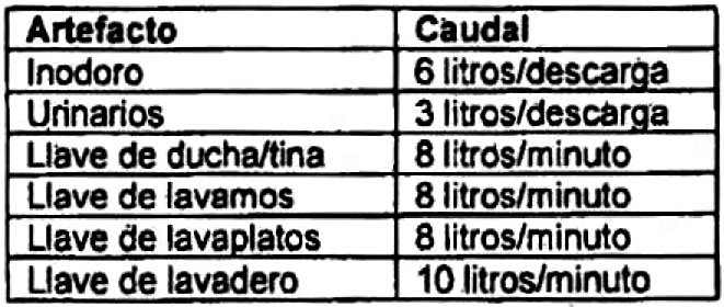 d) Todas las viviendas y espacios de uso común del proyecto deberán contar con artefactos sanitarios y griferías de bajo consumo de agua potable. Su caudal deberá estar explícito en las especificaciones técnicas y/o fichas técnicas de los proyectos de arquitectura y/o sanitario; y en todos los casos, deberá ser menor que lo indicado en la siguiente tabla: