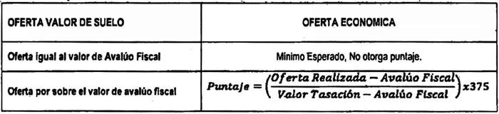 . La fórmula para calcular el puntaje obtenido por el valor de suelo ofertado se señala en la