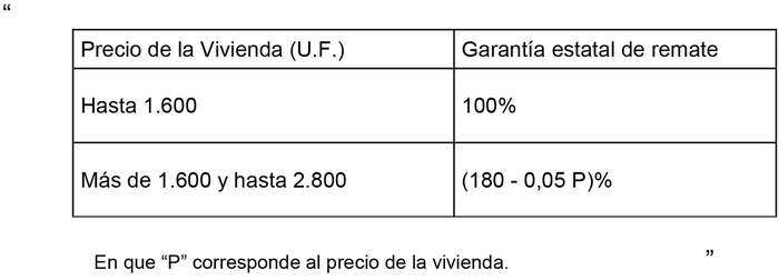 16. Reemplázase la tabla del inciso primero del artículo 25° "Garantía Estatal de Remate", por la siguiente: