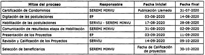 I. Modifíquese los plazos correspondientes a los procesos y fases de postulación y selección descritos en el resuelvo N° 2 de la res. ex. N° 439 de fecha 3 de junio de 2020, por los siguientes: