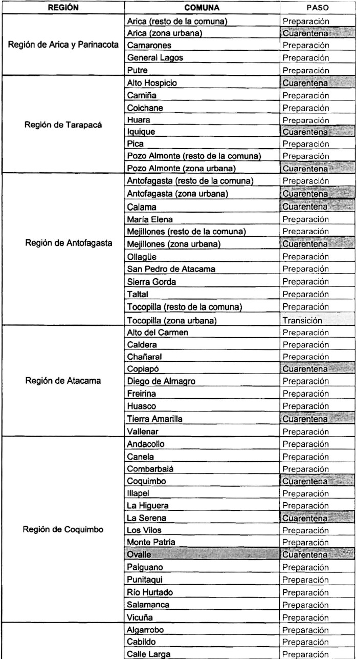 6. Déjase constancia que lo dispuesto en el Capítulo II de la resolución exenta Nº 591, de 2020, del Ministerio de Salud, será aplicable a las localidades del país, las cuales se encuentran en el Paso que se indica a continuación: