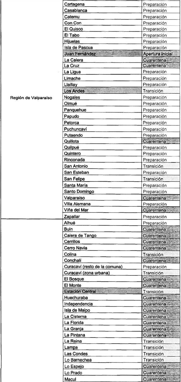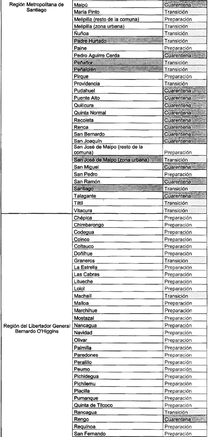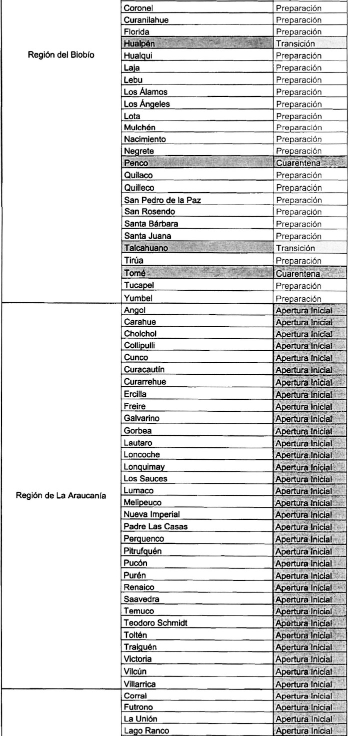 En consecuencia, los habitantes de dichas localidades deberán permanecer en cuarentena o aislamiento los días sábado, domingo y festivos, además de observar las medidas dispuestas para el "Paso 2: Transición" en la resolución exenta Nº 591, ya citada.