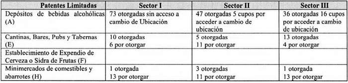 El siguiente cuadro permitirá en función de las patentes limitadas y su zonificación otorgar o efectuar el cambio de ubicación de los giros que a continuación se detallan: