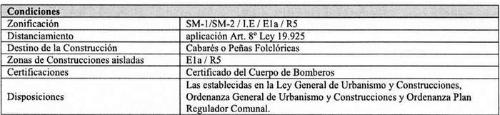 Artículo 9º: El Departamento de Rentas y Recaudación, ingresada una solicitud de patente para el funcionamiento de un establecimiento de expendio y/o consumo de bebidas alcohólicas, solicitará de la Dirección de Obras Municipales emita un Informe de Factibilidad, el que se referirá a los siguientes aspectos: