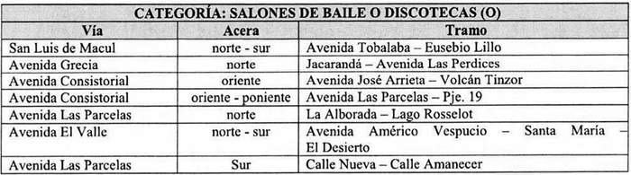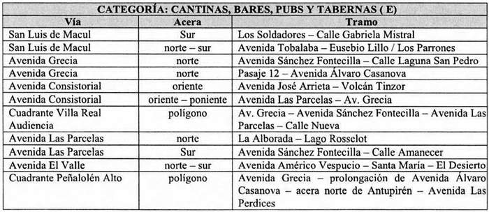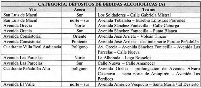 Artículo 25: Establézcase la restricción en el otorgamiento y cambios de ubicación en las siguientes zonas y calles, por existir dificultades de seguridad y por las características propias de cada zona, en virtud a las siguientes clasificaciones de alcoholes, restricciones que prevalecerán por sobre la graficación de las láminas a que se refiere el Art. 20º (Láminas A, C, D, E, F, H, I, J, K, Ñ, O, P, Q).