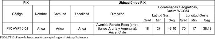 2. Ubicación del PIX Arica y Parinacota.