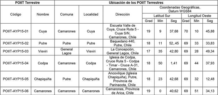 3. Ubicación de los POIIT Terrestres del Trazado Regional de Infraestructura Óptica Arica y Parinacota.