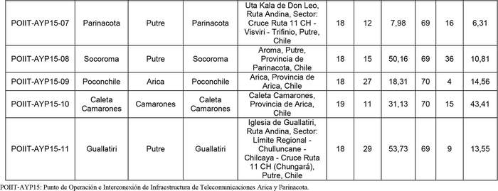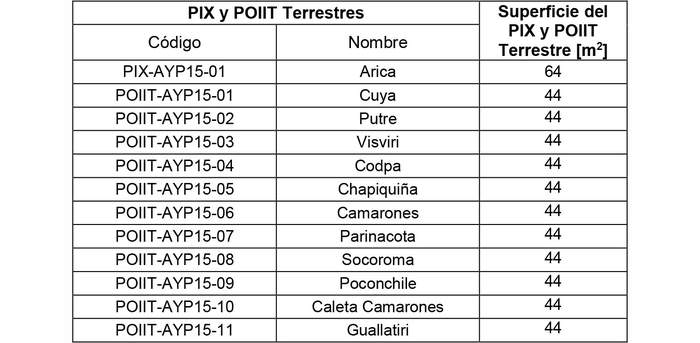 7.2 La Zona de Servicio Mínima corresponde a las áreas de emplazamiento (sitios) y la ubicación del PIX, Puntos de Derivación y POIIT Terrestre. Por su parte la superficie del PIX y los POIIT Terrestres corresponde a la siguiente.