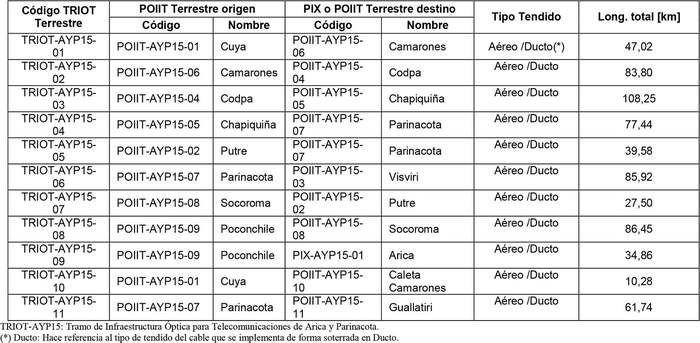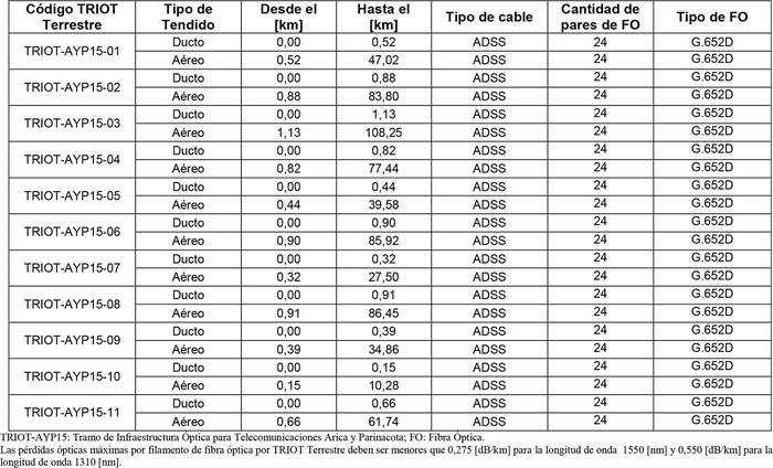 5. Características técnicas de los TRIOT Terrestres del Trazado Regional de Infraestructura Óptica Arica y Parinacota.