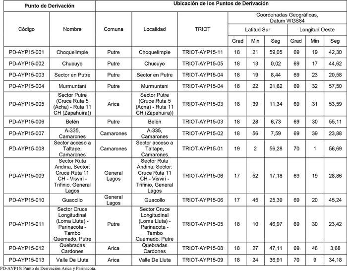 6. Ubicación de los Puntos de Derivación del Trazado Regional de Infraestructura Óptica Arica y Parinacota.