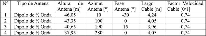 - Arreglo de Antenas de acuerdo a la siguiente tabla: