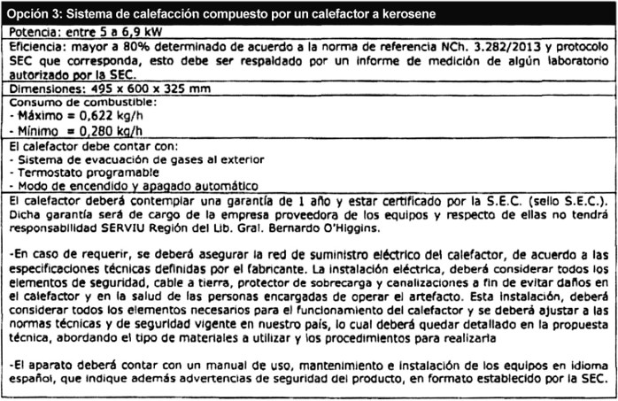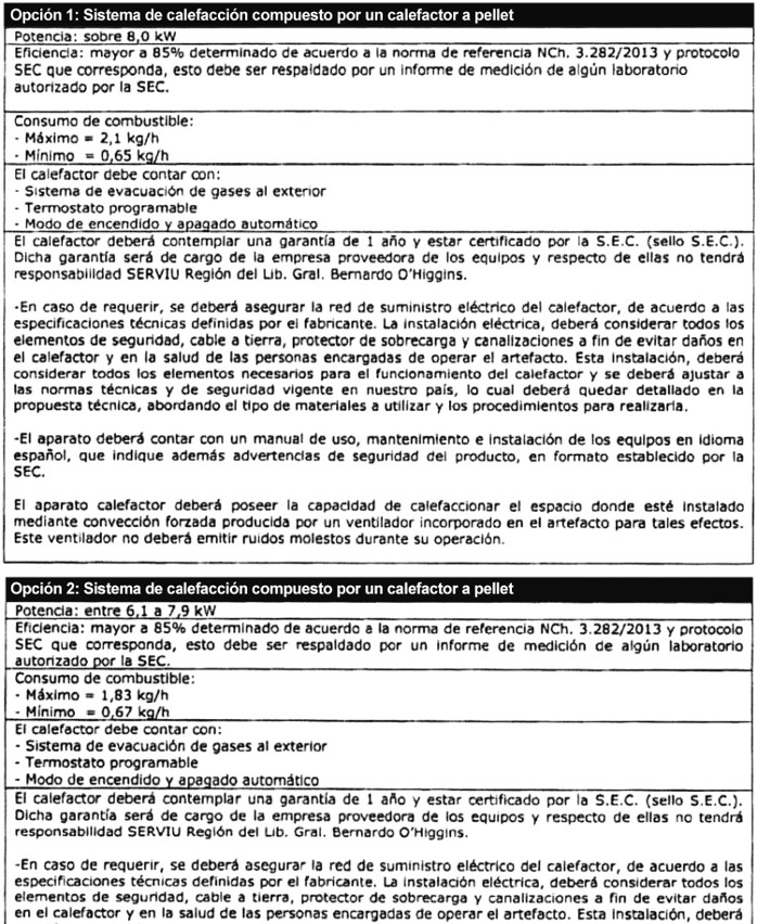 D.O. 14.10.2020podrán seleccionarse calefactores de empresas que cuenten con aparatos que cumplan con alguna de las opciones y características técnicas señaladas en la Res. exenta Nº 739, de fecha 9 de septiembre de 2020. Además de lo anterior, las empresas proveedoras de calefactores deberán haber participado con equipos instalados en el marco de los llamados de los años: Res. exenta N° 658 del 15/07/2016, Res. exenta Nº 555 del 16/06/2017, Res. exenta N° 456 del 13/06/2018 y/o Res. exenta Nº 298 del 08/04/2019; Res. exenta Nº 1.221, del 07/10/2019, realizados por el Ministerio del Medio Ambiente para el recambio de calefactores en la Región del Libertador General Bernardo O'Higgins, bajo el plan de Descontaminación Atmosférica. Lo anterior deberá ser debidamente acreditado ante Serviu.