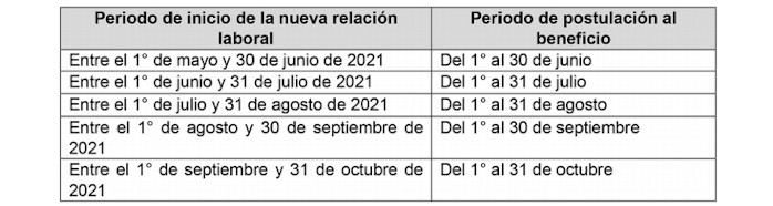 Los/Las trabajadores/as que cumplan con los requisitos para postular al IFE Laboral podrán hacerlo en el sitio web www.subsidioalempleo.cl habilitado por el Servicio Nacional de Capacitación y Empleo, hasta el 30 de junio de 2022, la que se devengará, desde que se conceda, hasta por tres meses, acorde al siguiente cuadro: