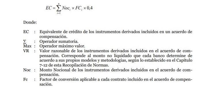 En caso de que un conjunto de contratos derivados haya sido celebrado con una contraparte bajo el amparo de un contrato marco de compensación bilateral de aquellos reconocidos por el Banco Central de Chile, el efecto mitigador del riesgo de contraparte atribuible a la compensación podrá aplicarse en el cálculo del "equivalente de crédito" para ese conjunto de instrumentos derivados.