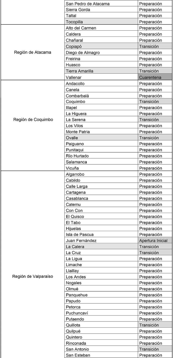 3. Dispóngase que las localidades que se indican a continuación avanzarán al "Paso 3: Preparación" del que trata el Capítulo II de la resolución exenta Nº 591, de 2020, del Ministerio de Salud.