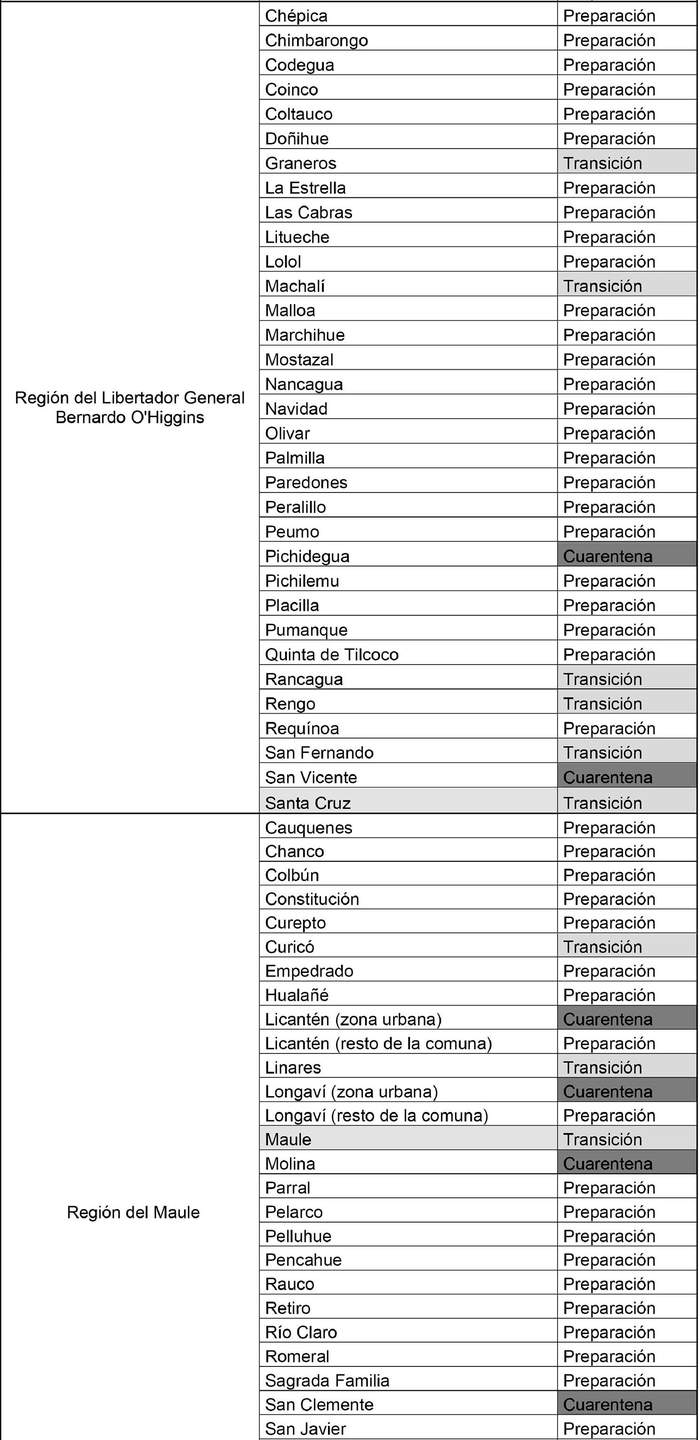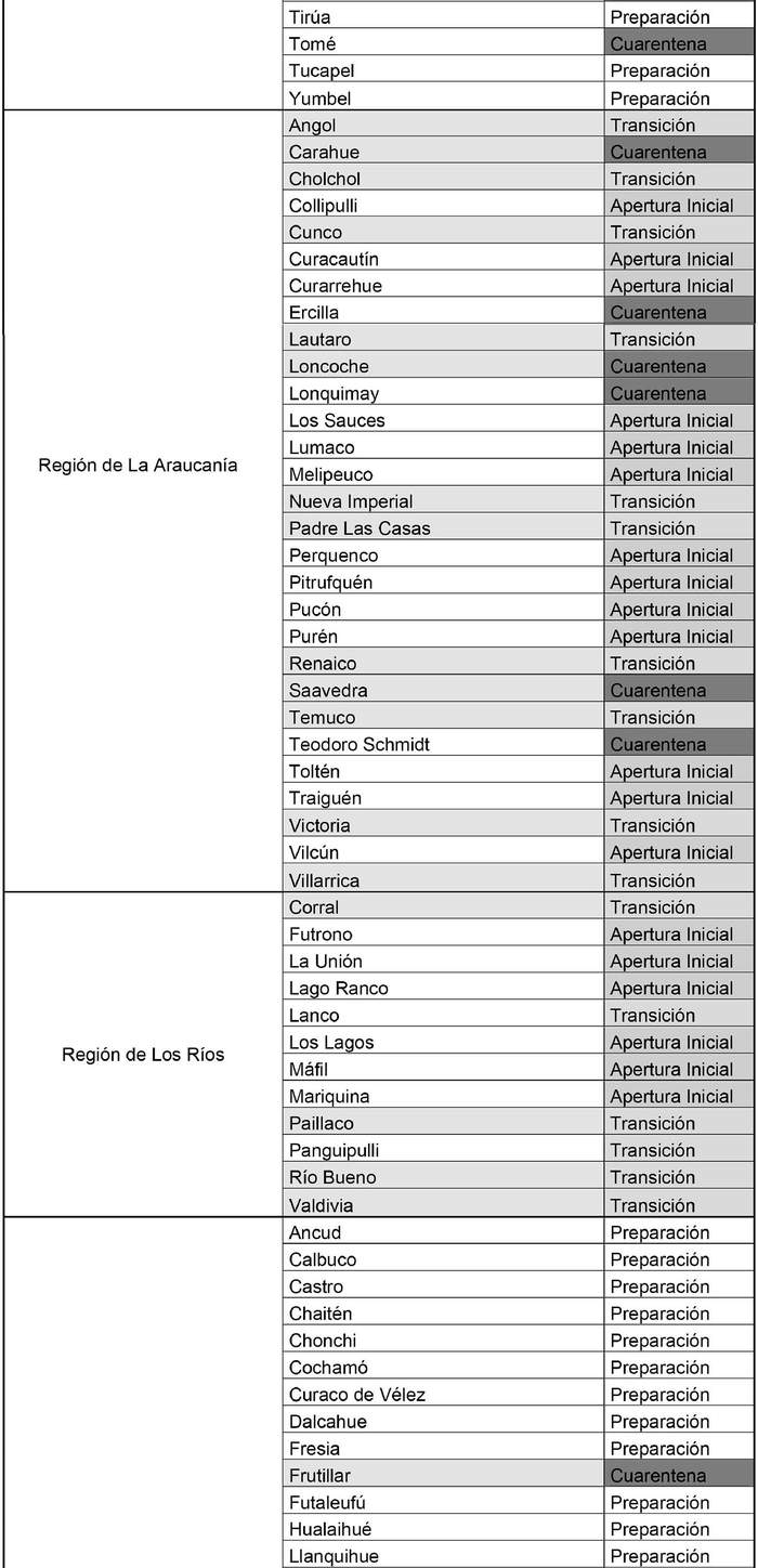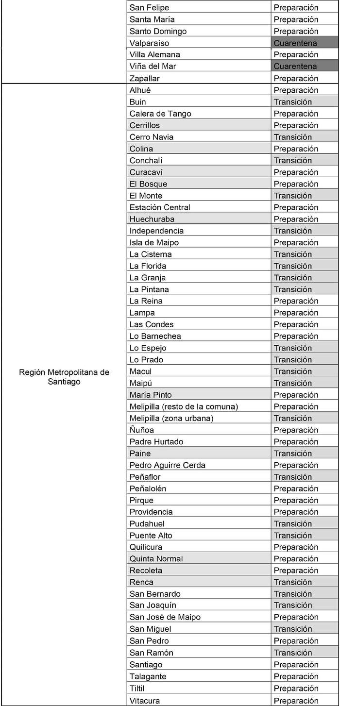 En consecuencia, los habitantes de dichas localidades deberán permanecer en cuarentena o aislamiento los días sábado, domingo y festivos, además de observar las medidas dispuestas para el "Paso 2: Transición" en la resolución exenta Nº 591, ya citada.