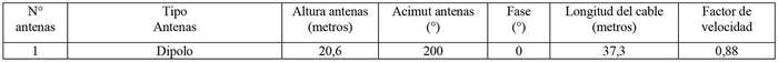 - Ganancia antena : 1,79 dBd de ganancia máxima.
