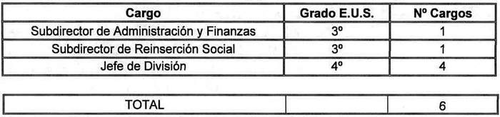 Los cargos jefes de sección una vez que queden vacantes por cualquier causa se suprimirán, por el solo ministerio de la ley. Lo dispuesto anteriormente, se formalizará mediante resolución del Director Nacional de Gendarmería, visada por la Dirección de Presupuestos.