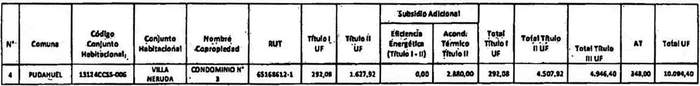 2. Que, mediante el oficio Nº 3223 de fecha 01.07.2020, singularizado en el visto 13, el Subdirector de Vivienda y Equipamiento (S) de Serviu Metropolitano solicita rectificación de montos para Título I y II del proyecto "Condominio 3, Villa Neruda", de la comuna de Pudahuel y montos para Título II del proyecto "Concilio Vaticano II, Lote Nº 5", de la comuna de San Ramón;