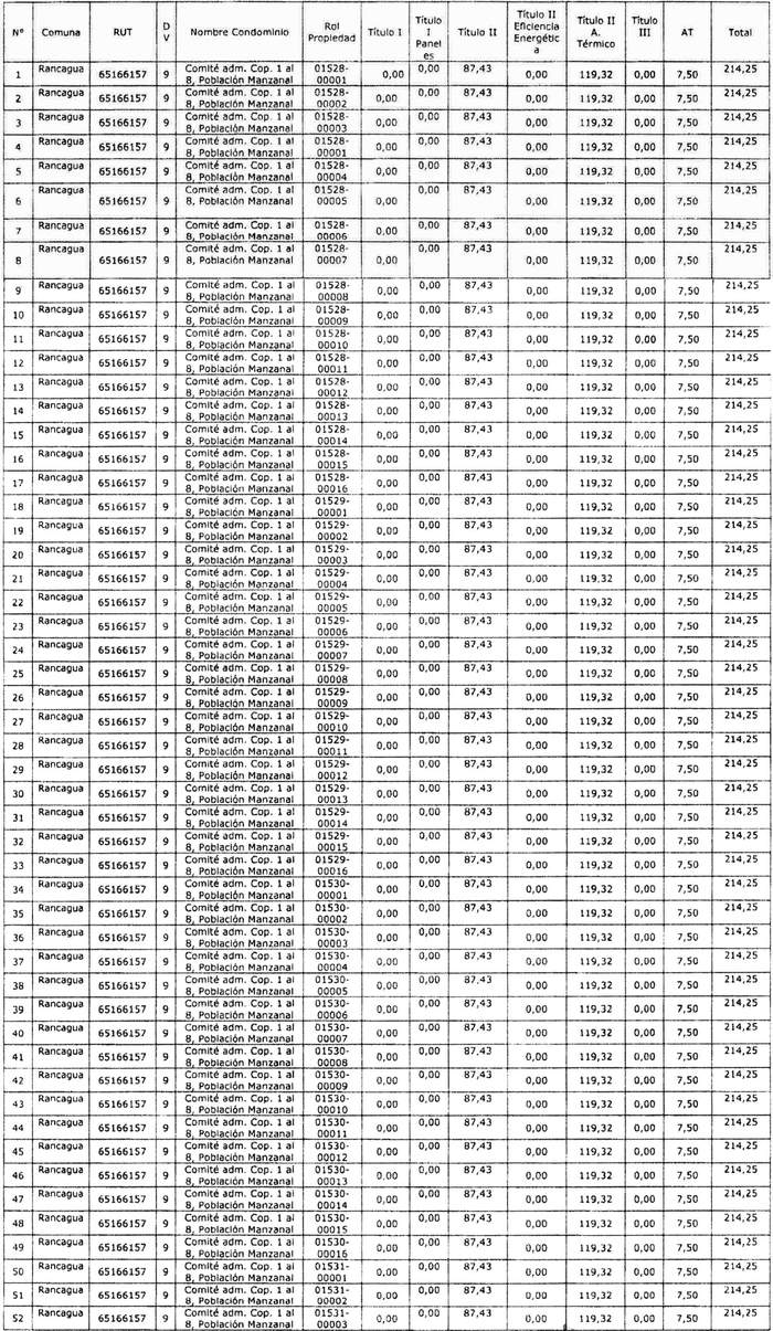 a) En su resuelvo N° 1, agregando los siguientes condominios sociales en la tabla adjunta en dicha resolución: