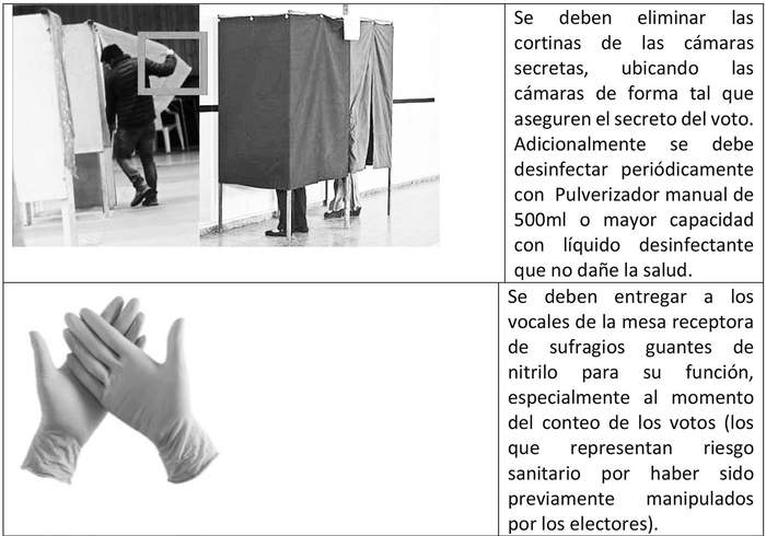 Una dificultad para el proceso en el actual contexto son las cámaras secretas donde el elector marcará sus preferencias de Primarias 2020. Por tanto, se deberán eliminar las cortinas de la cámara secreta y tendrán que ser ubicadas en una posición que garantice el secreto del voto.