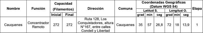3. La interconexión del Concentrador Remoto de la comuna de Cauquenes, con el centro Local Concepción, se realizará mediante medios de transmisión por fibra óptica propios o de terceros, debidamente autorizados.