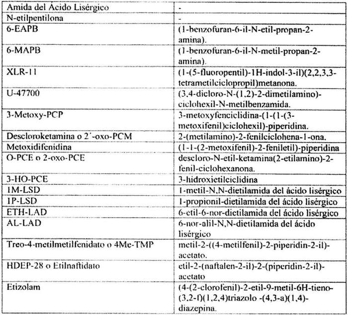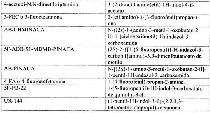 2.- Incorpórase en la Lista I del Título V, a continuación de la sustancia ("PEPAP" y antes de la frase "los isómeros, a menos que estén expresamente exceptuados, de los estupefacientes de esta Lista", el siguiente listado: