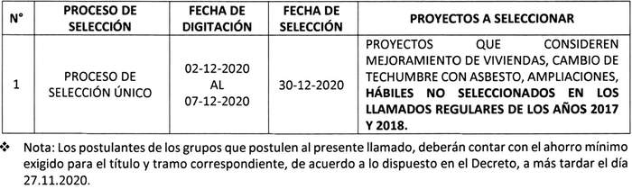 b) Que, por oficio citado en el visto 6) de la presente resolución el Ministro de Vivienda y Urbanismo, autoriza a efectuar llamado a postulación regional extraordinario, en condiciones especiales, a través del Programa de Protección del Patrimonio Familiar, en sus Títulos II y III, Mejoramiento y Ampliación de la Vivienda, destinado a familias que han postulado con proyectos calificados en los llamados regulares del DS Nº 255 (V. y U.), de 2006 y sus modificaciones, de los años 2017 y 2018, sin haber obtenido selección a la fecha.
