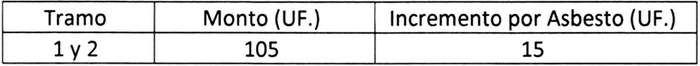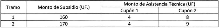 6. Establécese un monto mayor de subsidio respecto de lo señalado en el Artículo 6º del DS Nº 255 (V. y U.), de 2006 y sus modificaciones, dada la necesidad de financiar las reparaciones más complejas que se pueden dar en estos casos. Este mayor monto de subsidio para la intervención de la vivienda podrá determinarse si la cubierta está constituida por asbesto cemento y debe ser reemplazado conforme a lo señalado en el resuelvo 9 de esta resolución exenta. Los montos serán los indicados en la siguiente tabla: