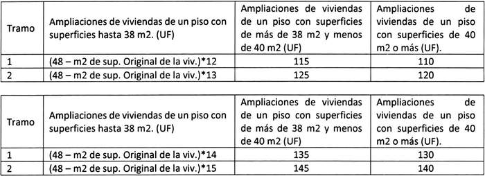 Además, estos montos podrán incrementarse en 45 Unidades de Fomento en el caso que la ampliación se ejecute en el 2° piso.