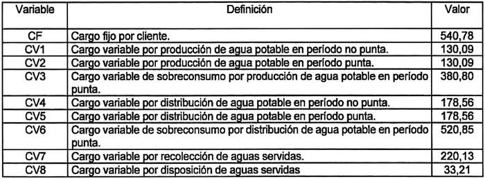 2.3. CARGO VARIABLE POR SERVICIO DE AGUA POTABLE EN PERÍODO PUNTA