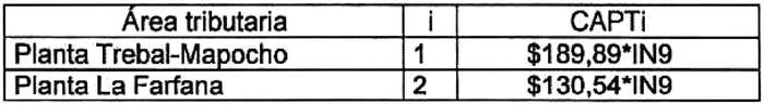 CAPTi : corresponde al cargo variable por tratamiento de aguas servidas, en pesos, del área tributaria i, de acuerdo a los siguientes valores: