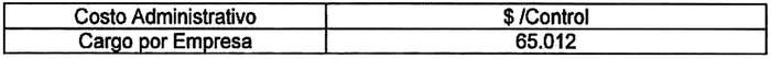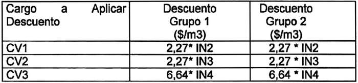 Los valores a cobrar serán: Cargo x IN12, de acuerdo a las siguientes tablas: