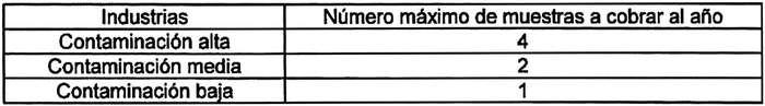 La identificación de las industrias a controlar en cada uno de estos subgrupos se realizará de acuerdo a las tablas Nº 5 (Parámetros según actividad económica) y Nº 6 (Descripción de actividades según código CIIU) del punto Nº 6.2 de la Norma que establece el DS MOP 609/98. En el caso de que alguna de las industrias presente más de un tipo de contaminación o parámetros, la frecuencia de muestreo corresponderá al tipo mayor que se seleccione medir.