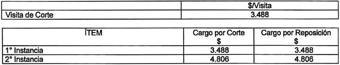 El prestador podrá cobrar por concepto de corte y reposición del suministro a usuarios morosos los siguientes cargos en las instancias que se indican: