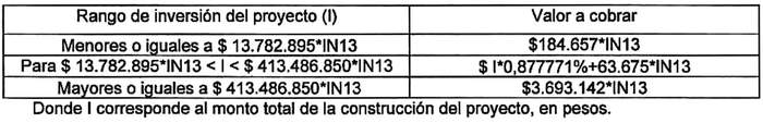 El prestador podrá cobrar aporte reembolsable de CCRI*IN17 pesos por metro cúbico de capacidad de recolección de aguas servidas a los usuarios de las empresas interconectadas, según la siguiente tabla:
