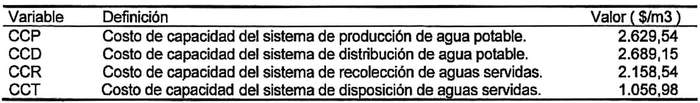 La definición de las variables incorporadas en las fórmulas tarifarias anteriores y sus respectivos valores, al 31 de diciembre de 2018, son los indicados a continuación, para los grupos de sistemas que se señalan: