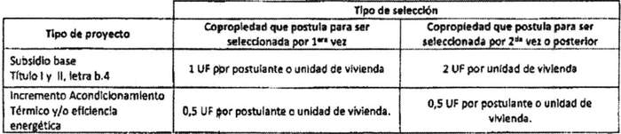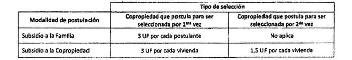 b) Subsidio a la Comunidad de Copropietarios: Las copropiedades formalizadas con anterioridad al ingreso de antecedentes al Serviu podrán postular al Subsidio a la Comunidad de Copropietarios, cuyo monto global será equivalente el producto del subsidio y la asistencia técnica por la cantidad de viviendas del condominio. Dicho beneficio se asociará al RUT de la copropiedad postulante y a los roles de las unidades.