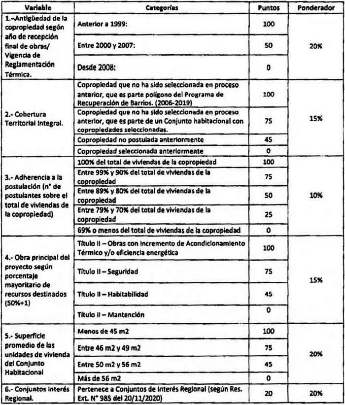 Las copropiedades beneficiadas en virtud de las resoluciones exentas N° 3.239 (V. y U.), de 2011; N° 3.448 (V. y U.), de 2012; N° 739 (V. y U.), de 2013; N° 955 (V. y U.), de 2014; N° 923 (V. y U.), de 2015; N° 1.290 (V. y U.), de 2016; N° 1.538 (V. y U.), de 2017; N° 637 (V. y U.), de 2018; N° 3.051 (V. y U.), de 2018; N° 1.115 (V. y U.), de 2019 y N° 798, de esta Seremi Minvu, de 1019, sólo podrán postular en la modalidad de Subsidio a la Comunidad de Copropietarios a que se refiere el presente llamado.