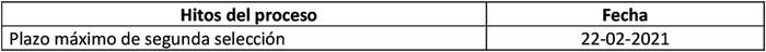 Los plazos correspondientes a cada hito del proceso de selección serán los siguientes:
