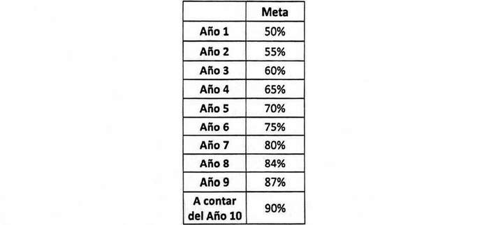 Entrada en vigencia: Las metas y otras obligaciones asociadas entrarán en vigencia 24 meses después de la publicación del decreto supremo. Las demás disposiciones entrarán en vigencia al momento de su publicación.